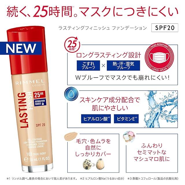 Rimmel (リンメル) ラスティングフィニッシュ ファンデーション 100 アイボリー 明るめのピンクオークル 30mL アイボリー(ややピンクめのオークル)