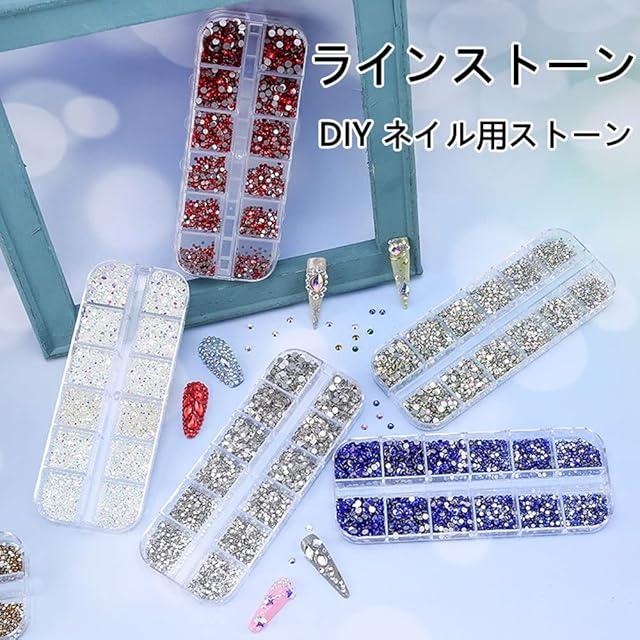ラインストーンは非常に軽いので、分類や保管に便利なストレージボックスが付属しています。どんな色のネイルにも合わせやすく、様々なネイルデザインに合わせやすい