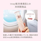 tway航空乗務員との共同開発ひと吹きでツヤツヤたまご肌!<br><br> 乾燥した機内で長時間働いている、韓国の航空会社tway航空乗務員との共同開発商品<br><br> #5in1ミスト<br> #ツヤツヤたまご肌<br> #メイク固定<br> <br><br> ◆5in1ミスト<br> デイクリーム+モーニングパック+フィクサー+ツヤクリーム+プライマー<br> ◆ツヤツヤたまご肌<br> スキンバーム+ミストの良いとこどり<br> スキンバーム<br> ・なめらかなゆでたまご肌を演出<br> ・長時間うるおい持続<br> ・肌のキメを整えしっとり肌に<br><br> ミスト<br> ・持ち運びしていつでもうるおい補給<br> ・外部環境から受ける乾燥対策<br> ・メイクの上から吹きかけてメイク崩れを防止<br> ・さわやかな使用感で気分リフレッシュ<br><br> ―使用方法―<br><br> 使用前に軽く振り、基礎スキンケア後またはメイクアップ後に 顔から20~30cmほど離し、吹きかけます。<br><br> TIPS<br> 日中の肌の乾燥が気になった際にも、適量を吹きかけると効果的です。<br>