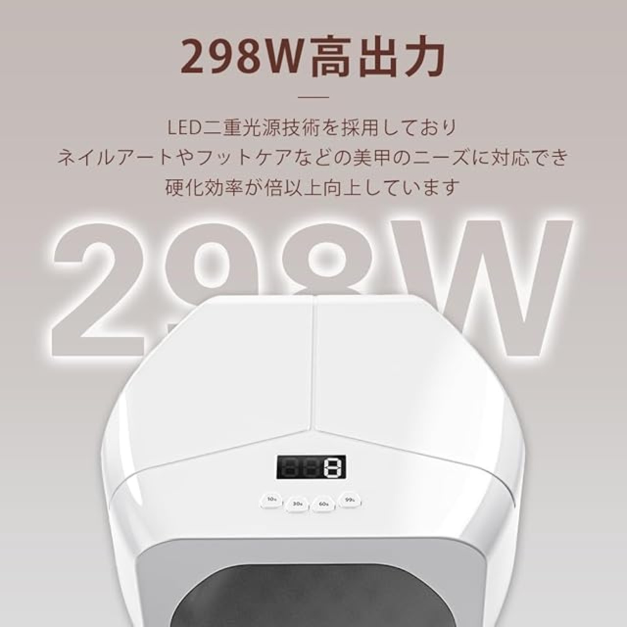 【2024革新版】ジェルネイル ネイルライト ネイル ledライト 72個のLED 硬化ライト 298W LED& uvライト UV プロ LEDネイルドライヤー 業界注目低ヒート機能 自動センサー機能 全ジェル対応 人感センサー 高速硬化レジン用 UV ledライト手足両用【L8】