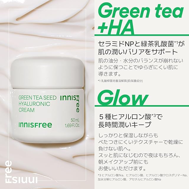 イニスフリー(innisfree) グリーンティーシード ヒアルロン クリーム 50ml - 正規品 保湿 水分たっぷり 脂性肌 乾燥肌 混合肌 乾燥 韓国コスメ