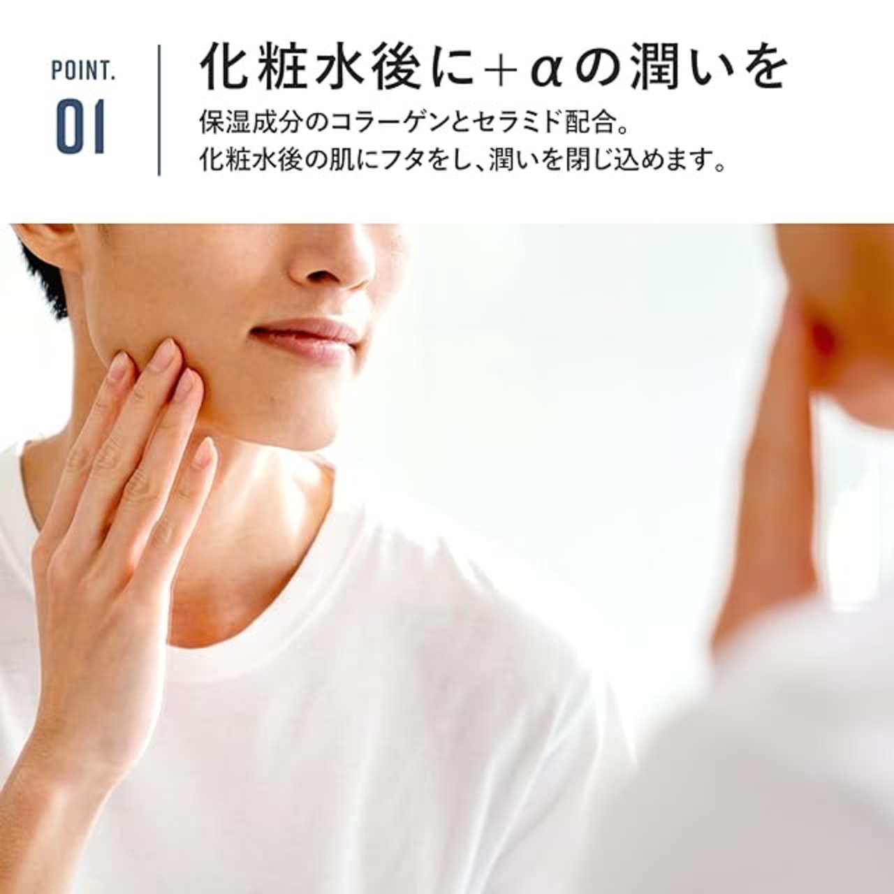 うるおいを「閉じ込める」:水分量が少なく乾燥しやすい男性の肌。化粧水で保湿を行っても時間の経過とともに水分は蒸発し、やがて再び乾燥してしまいます。Alom フェイスミルクは、肌の水分・油分を程よく補い、潤いを保ち、しっとりと柔らかな肌に整えます。