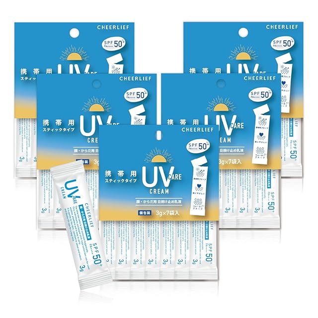 UV エッセンス 日焼け止め 携帯用スティックタイプ 顔 全身 いつでもどこでも使える 便利 SPF50+ 長時間ブロックうるおい チアリーフ UVケアクリーム 7袋入り (5個(35袋入り)) | SMILE