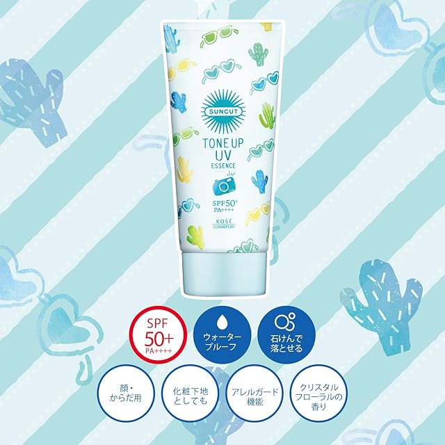 KOSE サンカット 日焼け止め トーンアップ UV エッセンス ミントグリーン カラーコントロール ウォータープルーフ 80g クリスタルフローラルの香り