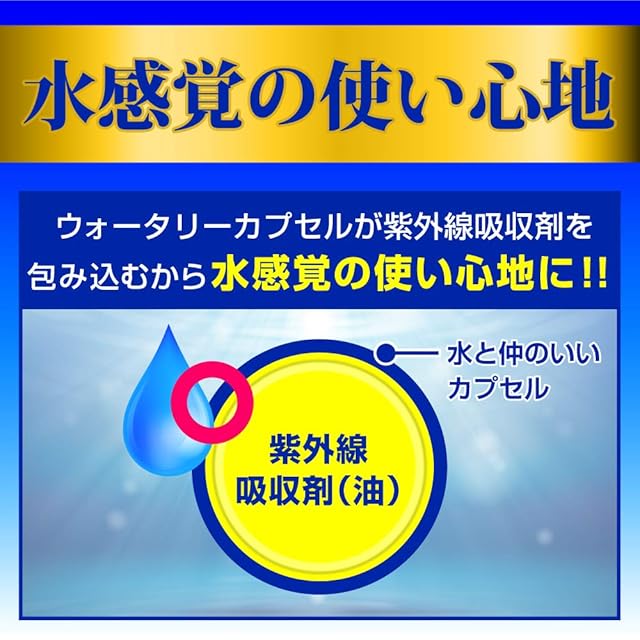 UVカット効果(スキンアクアシリーズ内)をもつみずみずしいジェルタイプの日やけ止め。