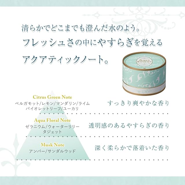 皮脂や汗を吸着し、さらさらの使用感です。 澄んだ水をイメージした透明感のあるアクアティックノートの香り。