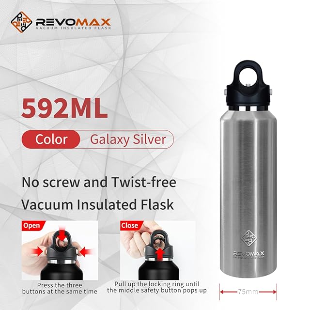 日本正規輸入品 Revomax2 炭酸対応真空断熱ボトル 20oz 592ml 18時間保温 36時間保冷 (ギャラクシーシルバー)