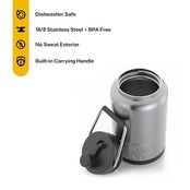 スチールのキャリーハンドル: ハンドルが作りつけられているため、大きな水筒の持ち運びも楽。