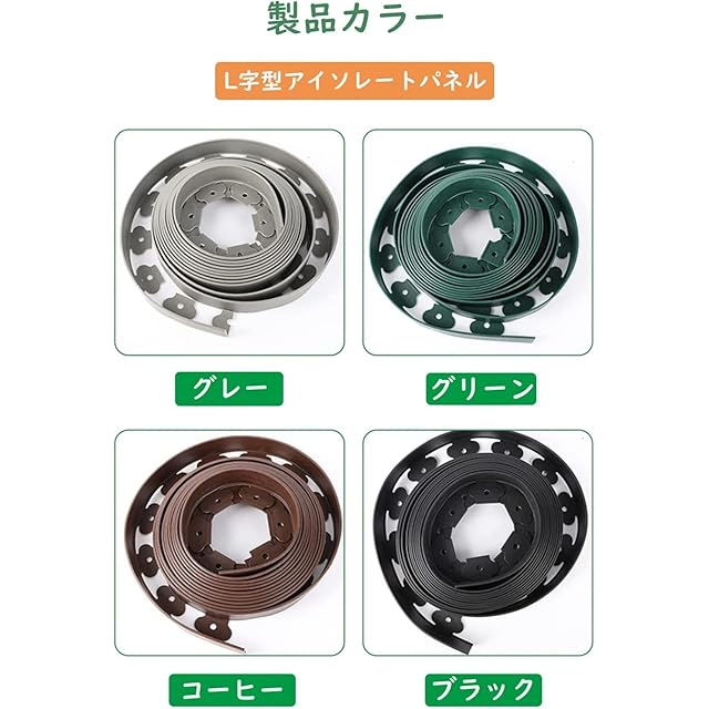 【材質】プラスチック製+プラスチック製アンカーボルト。高さ5cm/10cm選択可能 長さ10m裁断可能 グレー、グリーン、ブラウン、ブラック 4色選択 【固定ピンの長さ】(約)20㎝ 【固定ピンの数】30本