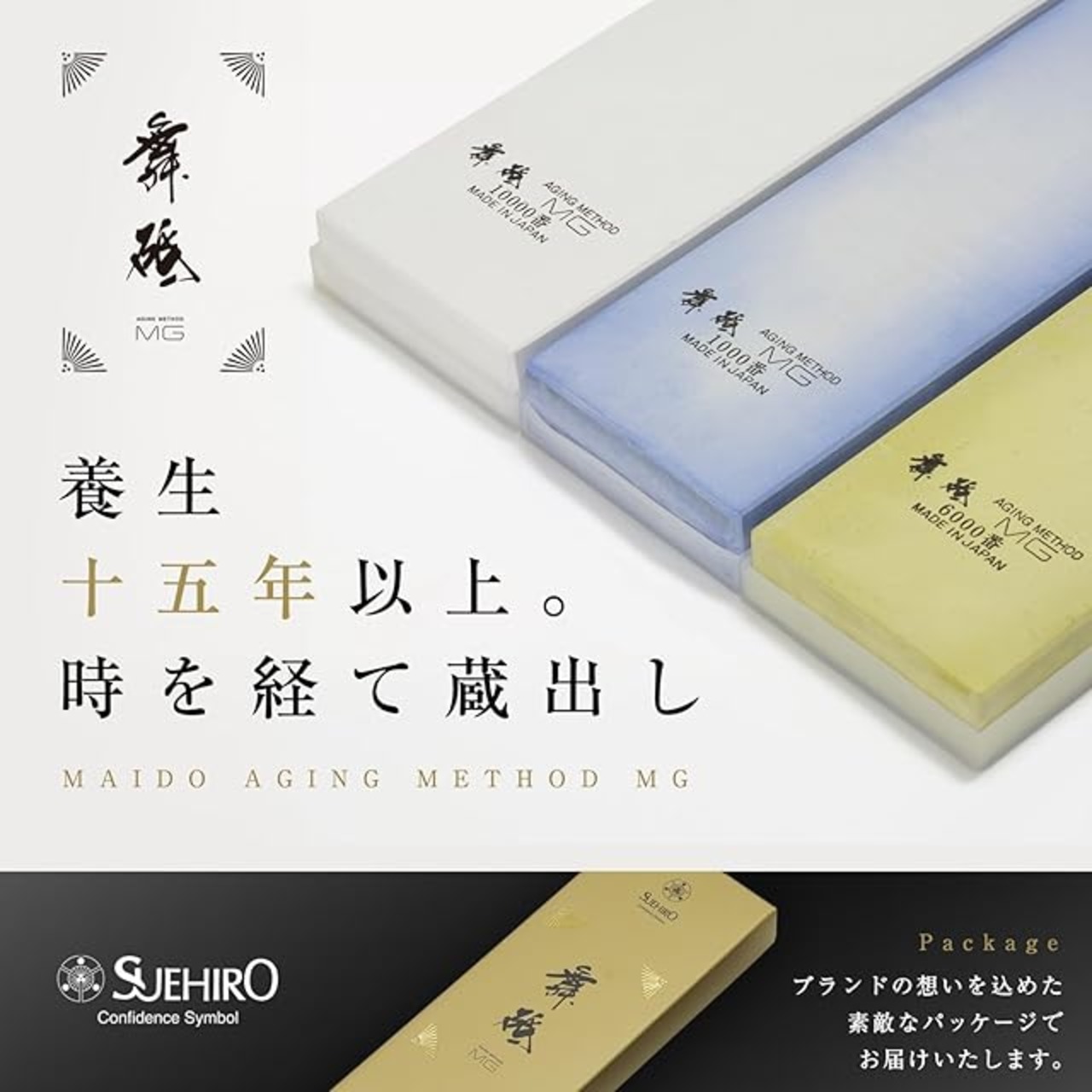 スエヒロ 中砥石 マグネシア砥石 舞砥 養生15年以上経て蔵出し 182×60×10mm 約460g (家庭用サイズ #1000)