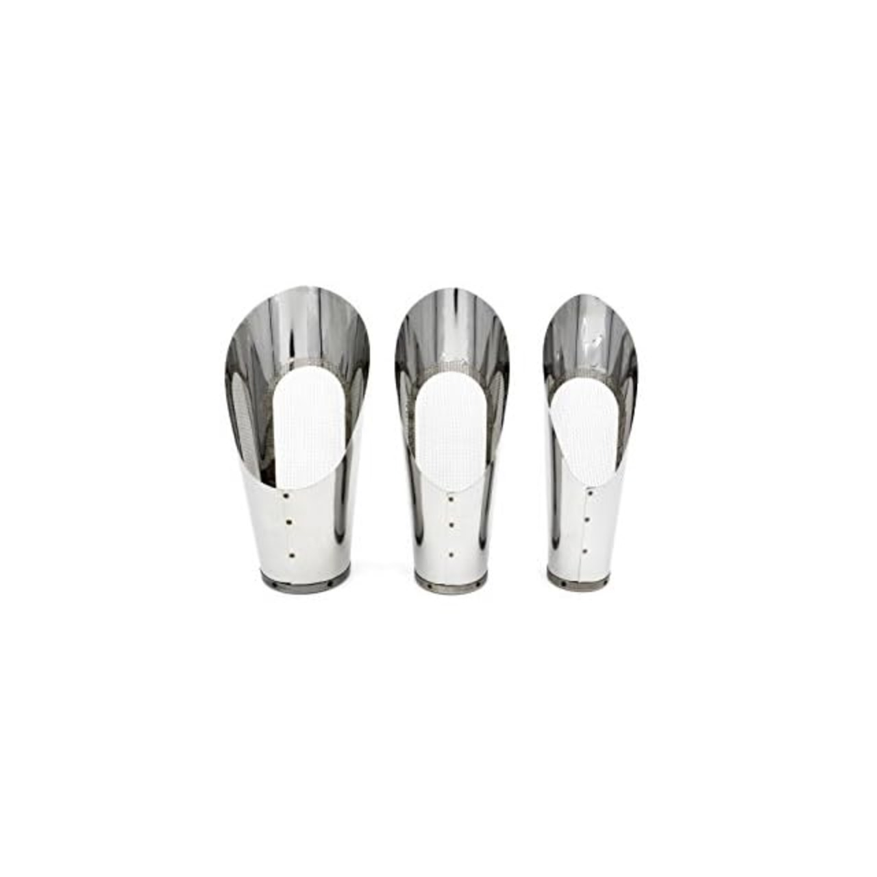 仕様<br>ステンレス製の土入れ直径50・65・80mmの3個組です。<br>3個とも底がアミになっていますので粉を落とせます。<br>全長:約170mm