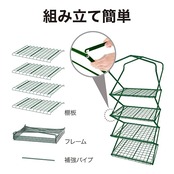 寒さや霜から大切な植物を守る。 本体は組み立てカンタンな伸縮式。シンプルで使いやすい、折りたたみ式温室。必要なときに組み立てて、すぐに使える手軽さが魅力です。使わない時は折りたたんでコンパクトに収納できます。棚はメッシュで通気性抜群(棚板1枚あたりの耐荷重は8kgまで)。ファスナー付きカバーで、中に入れたものが取り出しやすい。