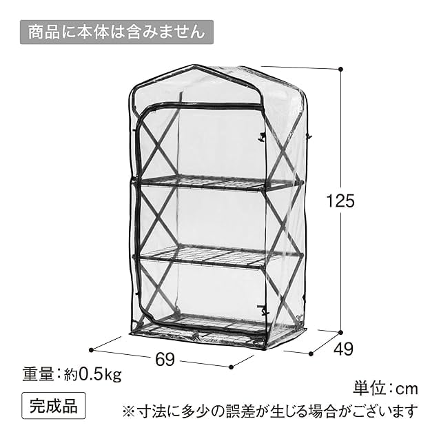 タカショー 温室 折りたたみ ダブルジップ温室 3段 替えカバー 幅69cm×奥行49cm×高さ125cm 【GRH-F02C】 組立簡単 園芸 ビニールハウス 防寒カバー 植物 育苗 | SMILE