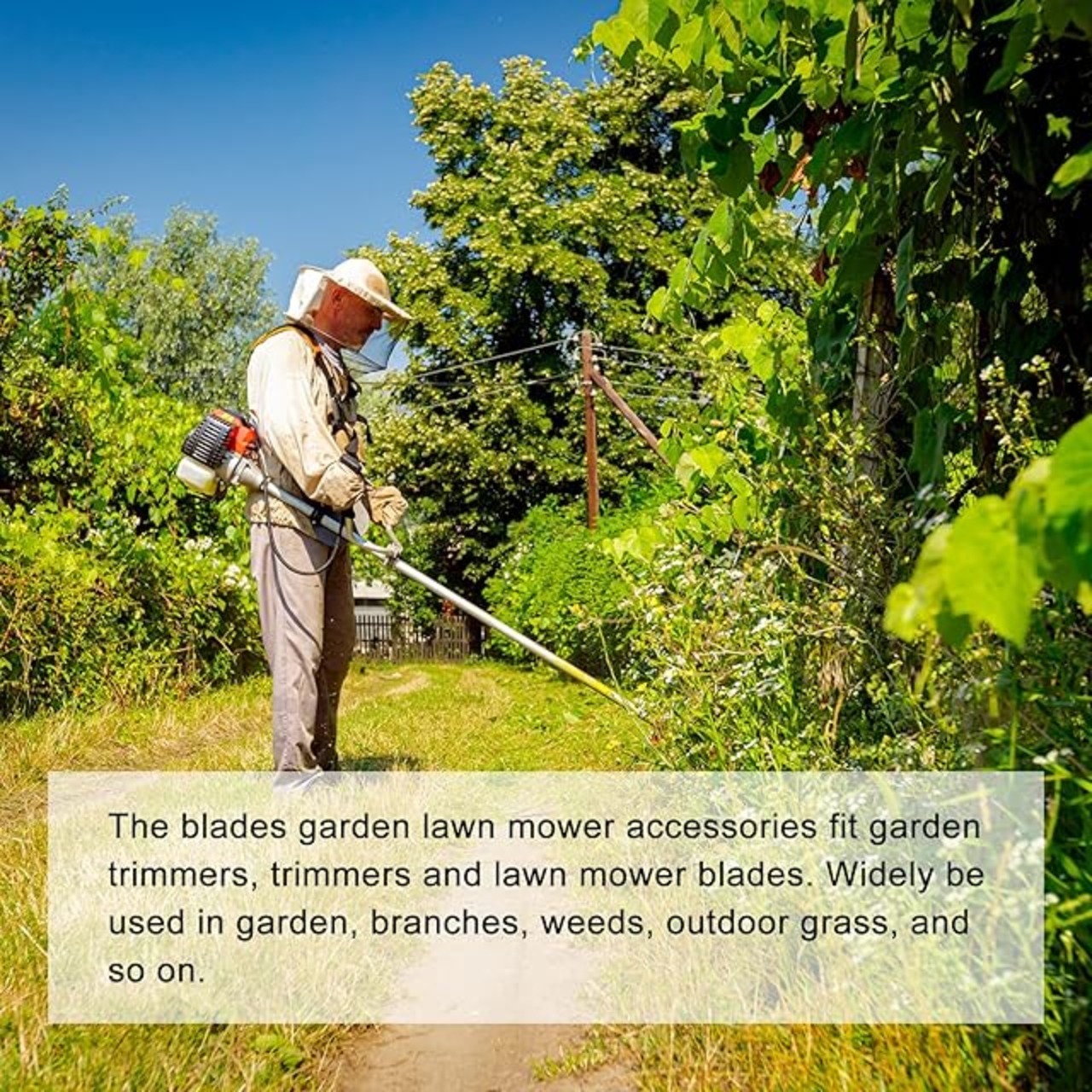 [応用] - 芝刈り機の刃は、ほとんどの芝刈り機に適合し、庭、畑、枝、雑草、屋外の草、鉢植えの植物、果樹などで広く使用されています。