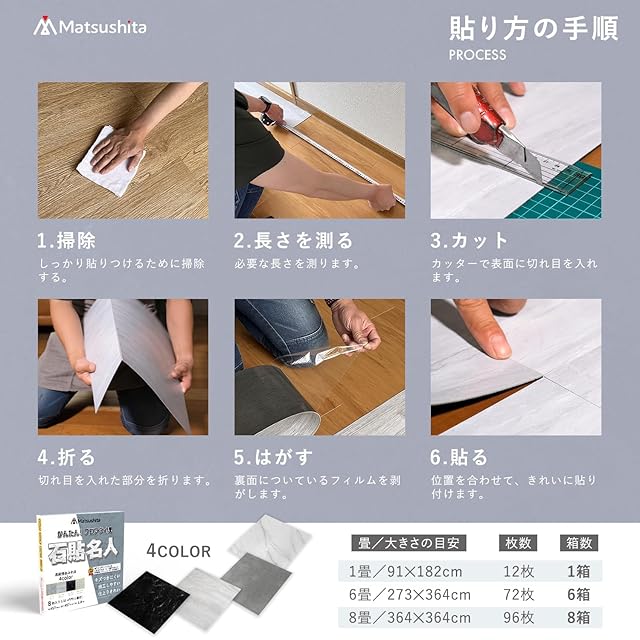 【簡単な施工で初心者でも安心なフローリングシート】 裏面のシートを剥がして貼るだけで、どなたでも手軽にフローリングシートを施工できる便利なアイテムです。初めての方も安心してお使いいただけます。