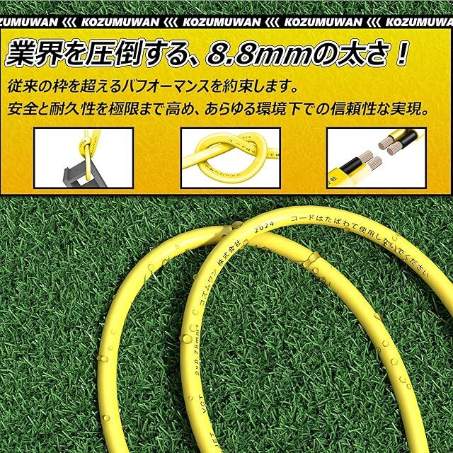 【ソフトタイプ】耐寒性に優れたやわらかい電線を使用した延長コード。耐久性と耐寒性、数千回以上を折り曲げても、損傷や性能の差異は見られません。最高の耐久性を実現し、冬でも柔らかくて収めやすい。