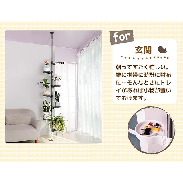 耐荷重:(約)プランター受け一つあたり4kg、横伸縮パイプ10kgまで 6つのトレイと1つのハンガーで、植木鉢を6本収納できます。上部のハンガーは、衣類や植物を吊るすのに使用可能、トレイとハンガーは360度回転できます。