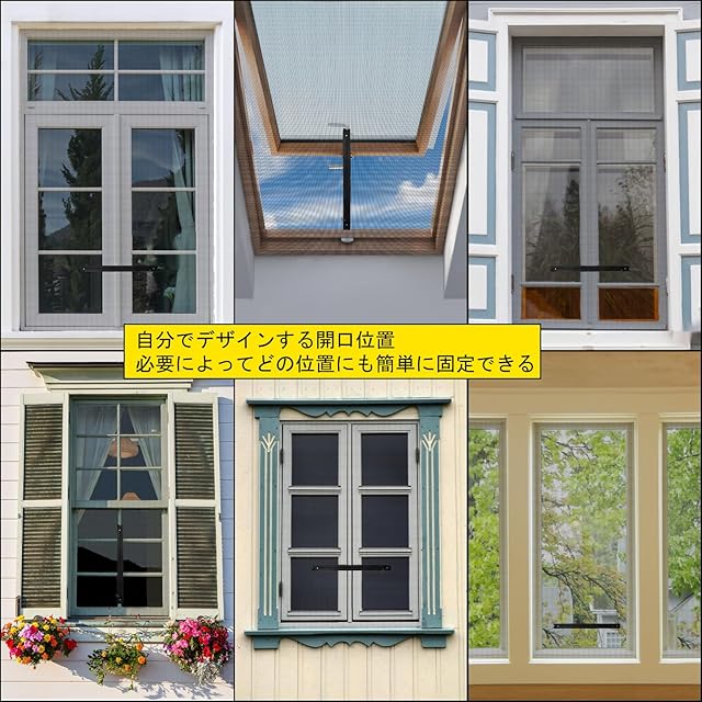 【様々な窓に対応】:様々なタイプの窓に対応します。 特に、ハンドルがある窓や、網を一部取り外して開閉しなければならない窓などに最適です。例えば、屋根窓、サッシ窓、引き違い窓、天窓、突き出し窓など。