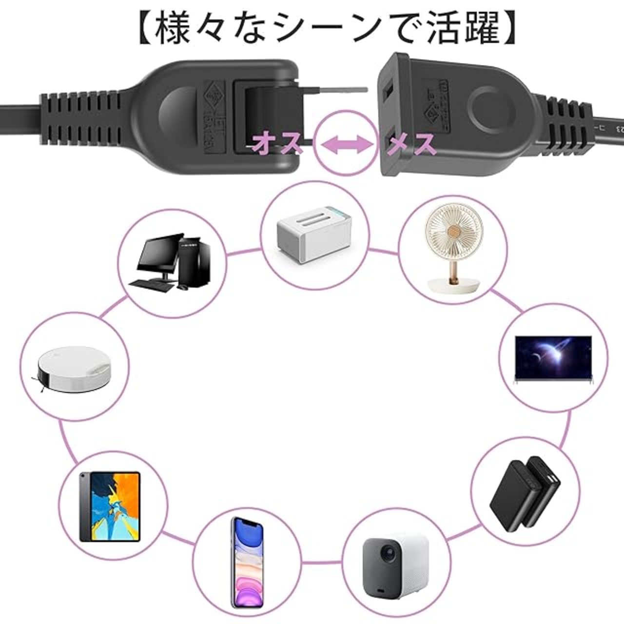 幅の広いACアダプタの接続に最適なACアダプタ用電源延長コードです。