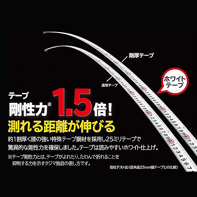 テープ長さ6.5m、剛厚 スチールテープ、テープ幅 25mm ロックタイプ