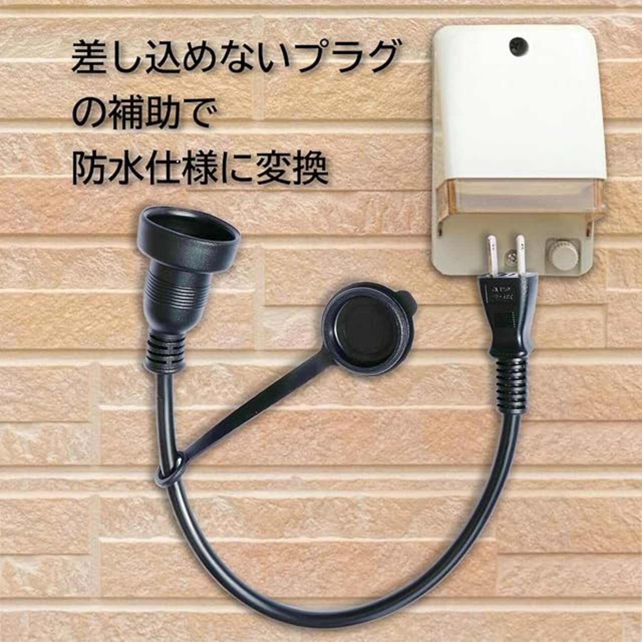 SUCCUL 電源 延長コード 防雨型 12A 1200W プラグ変換 PSE認証済み 防水 屋外用 電源コード 延長ケーブル 屋外コンセント用 電源増設 防雨型コンセント ジョイント 防雨キャップ付 (非防雨型⇒防雨型変換コード) | SMILE