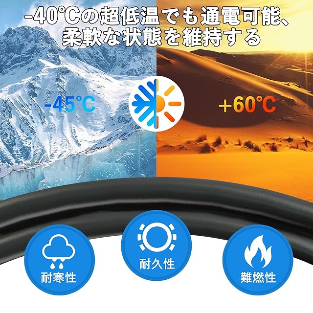 ■【高品質】耐久性と耐寒性、数千回以上を折り曲げでも、損傷や性能の差異は見られません。最高の耐久性を実現し、冬でも柔らかくて収めやすい。優れた銅質導線、エコPVC難燃性材料、電流の伝送も安全性も確保する;PSE認証を取得しており、安心に使える。
