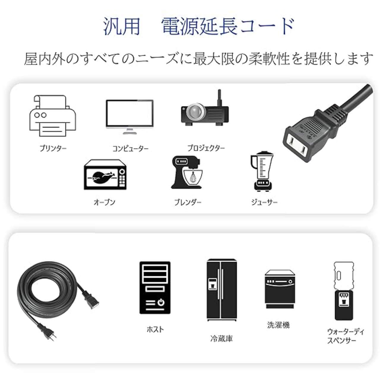 延長コード 10m 20m 延長ケーブル 連結可 電源ケーブル 電源コード 電源 分配コード 延長電源 電源増設 PSE 2芯 二重被覆 作業用 ソフトタイプ ブラック 耐寒 耐熱 耐摩耗 防塵 便利 コンパクト 高圧変圧 トラッキング防止 PSE認証 | SMILE