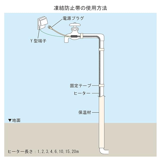 size:長さ6m style:保温テープなし・元電源用サーモスタットなし: