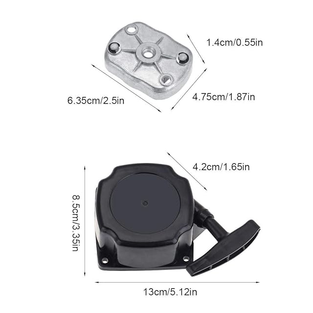 【商品仕様】材質プラスチック ;色写真のように リコイルスタータープルスタート取付穴 距離6.6cm / 2.6in ;リコイルスタータープルスタートサイズ約 13 * 8.5 * 4.2cm / 5.12 * 3.35 * 1.65in ;リコイルスタータープレートサイズ約6.35 * 4.75 * 1.4cm / 2.5 * 1.87 * 0.55in ;重量約 208g
