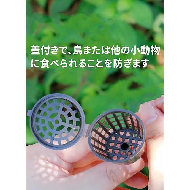 [適用シーン] - 鉢植え、家庭、バルコニー、ハンギングバスケット、屋外庭園などに使用できます。<br/>[適用範囲] - 肥料を必要とする多肉植物や盆栽に適しており、これらの鉢植えの成長に優れたツールです。<br/>[機能] - 肥料を移動から保護し、風による肥料の損失を減らすことができます。<br/>[包装数量] - 50個の肥料ボックスがあり、さまざまなニーズを満たし、鉢植えの栽培に選択肢を提供します。<br/>[高品質の材料] - 高品質のプラスチック製で、丈夫で耐久性があり、品質が良く長寿命です。<br/><br/>仕様:<br/><br>アイテムタイプ: 肥料バスケット<br/>材質: プラスチック<br/>製品サイズ: 約。 4×2.8cm / 1.6×1.1インチ<br/>適用範囲: 施肥が必要な多肉植物、盆栽などに適しています。<br/>重量: 約。 64g / 2.3オンス<br/><br><br/><br/>パッケージリスト:<br/>50倍<br/>肥料バスケット