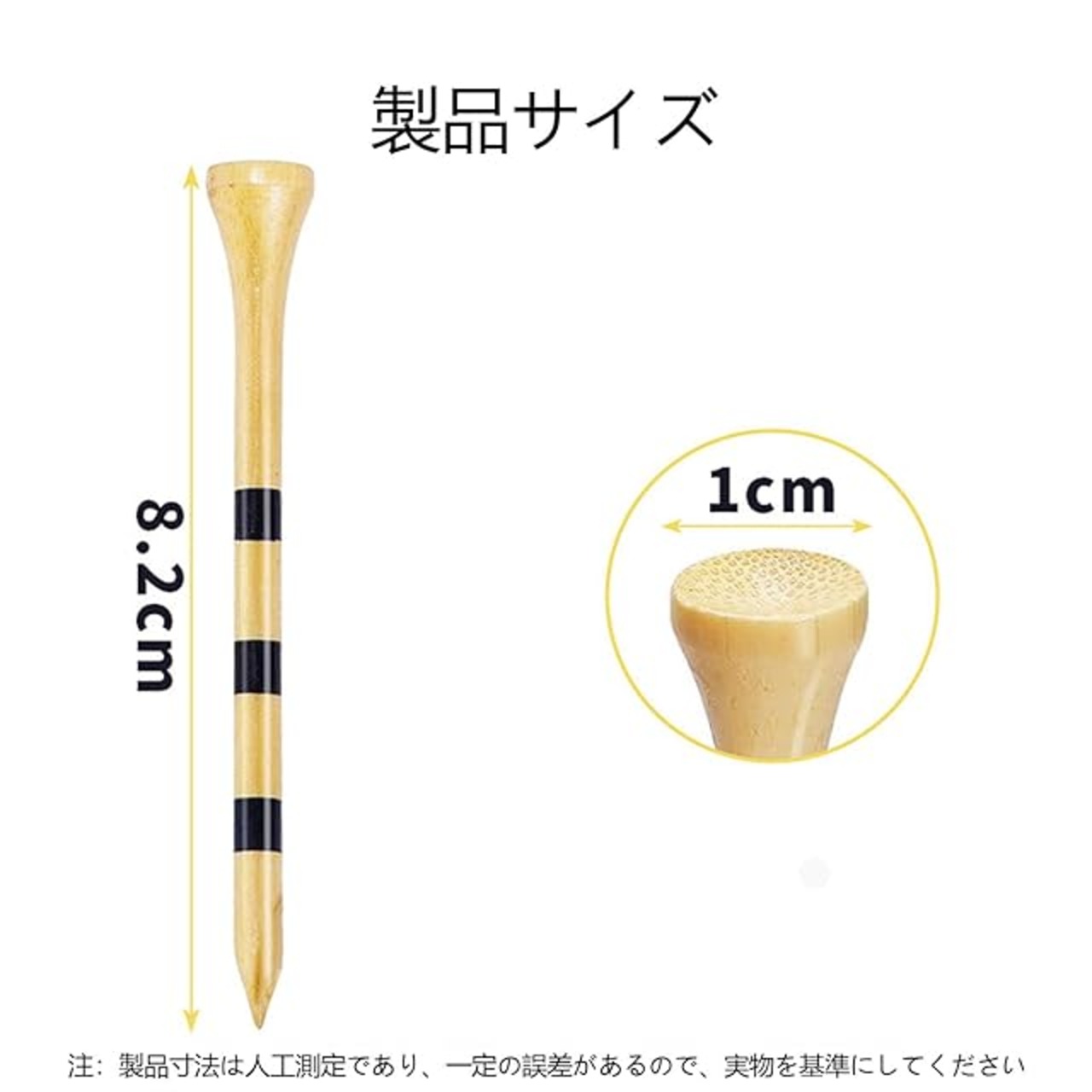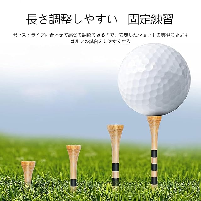 【大容量の50本セット】ロングタイプ82mm82mm長いティーなので対応範囲が広いですパッケージ内容:ゴルフティー50本セット。<br><br><br>【洗練されたデザイン】白いティーに黒のストライプ柄でデザインもよく、目立ちやすいので無くしづらい。<br><br><br>【耐久性に優れた】ゴルフティーはプラスチックではなく、環境にやさしい竹を採用しております環境に優しい土に還る竹素材を使用しています強度に優れた特別な竹を使用しているので、耐久性も抜群です。<br><br><br>【高さ調整可能】 目盛り付きのゴルフティーで、誰でもティーの高さを一定にすることが出来るので、常に安定したティーショットが可能です初心者と上級者両方対応できます。<br><br><br>【プレゼントにぴったり】自分用はもちろん、退職のお祝いや、誕生日、父の日のギフト、贈答品、記念のお品などとしても人気があります。<br><br><br>