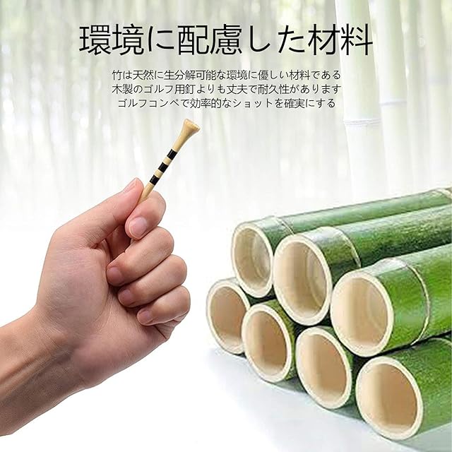 【耐久性に優れた】ゴルフティーはプラスチックではなく、環境にやさしい竹を採用しております環境に優しい土に還る竹素材を使用しています強度に優れた特別な竹を使用しているので、耐久性も抜群です。