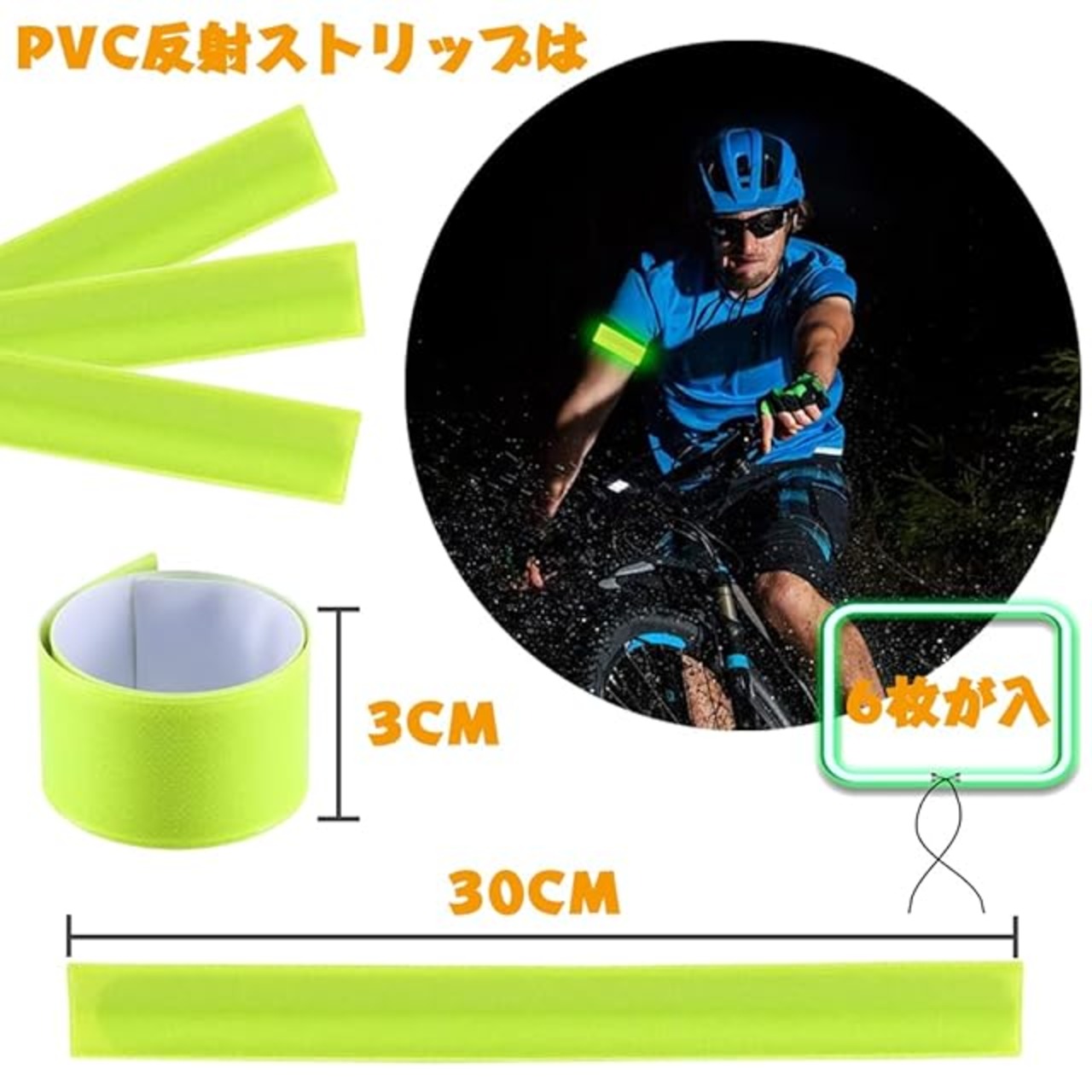 反射バンド 蛍光 反射 アームバンド 6個セット 柔軟で軽量 高輝度 裾バンド 腕 手首 脚 夜間反射 事故防止 子供/犬の散歩/ランニング/ジョギング ウォーキング用 30*3cm PVC反射スト 光る 夜間 グリーン