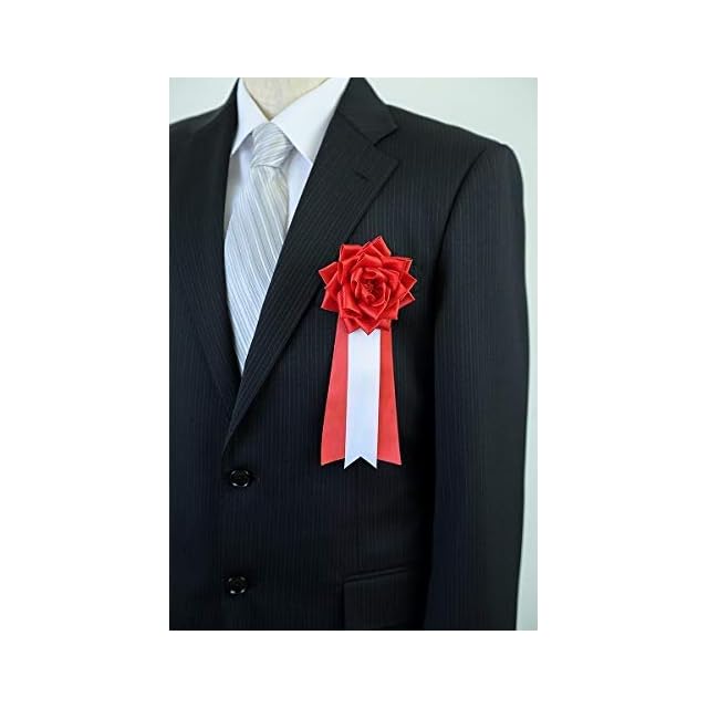 各種式典やイベント等の来賓、審査員などに付けていただく胸章です。 サイズは小・中・大・特大。色は赤・白・ピンク・黄色が一般的です。 衣服を傷つけない様に原材料を吟味して、着用してて気持ち良い様に美しいリボン徽章を御提供致します。実用新案2082113を取得しております。 裏の差込部分がプラスチックのクリップを採用してるリボン徽章メーカーが多いようです。しかし、万が一割れたりした場合に手や衣服を傷つけたりしては大変です。当社は面取り加工を施したステンレス製を採用しました。これで割れたり傷つけたりする心配がございません。 金具や安全ピンは軟質ビニールの土台から出ております。プラスチックのように固くないので衣服や指先を傷つける事がありません。ソフトな手触りです。 安全ピンも標準でついております。ポケットなど、差し込む場所がない場合は安全ピンをご利用ください。