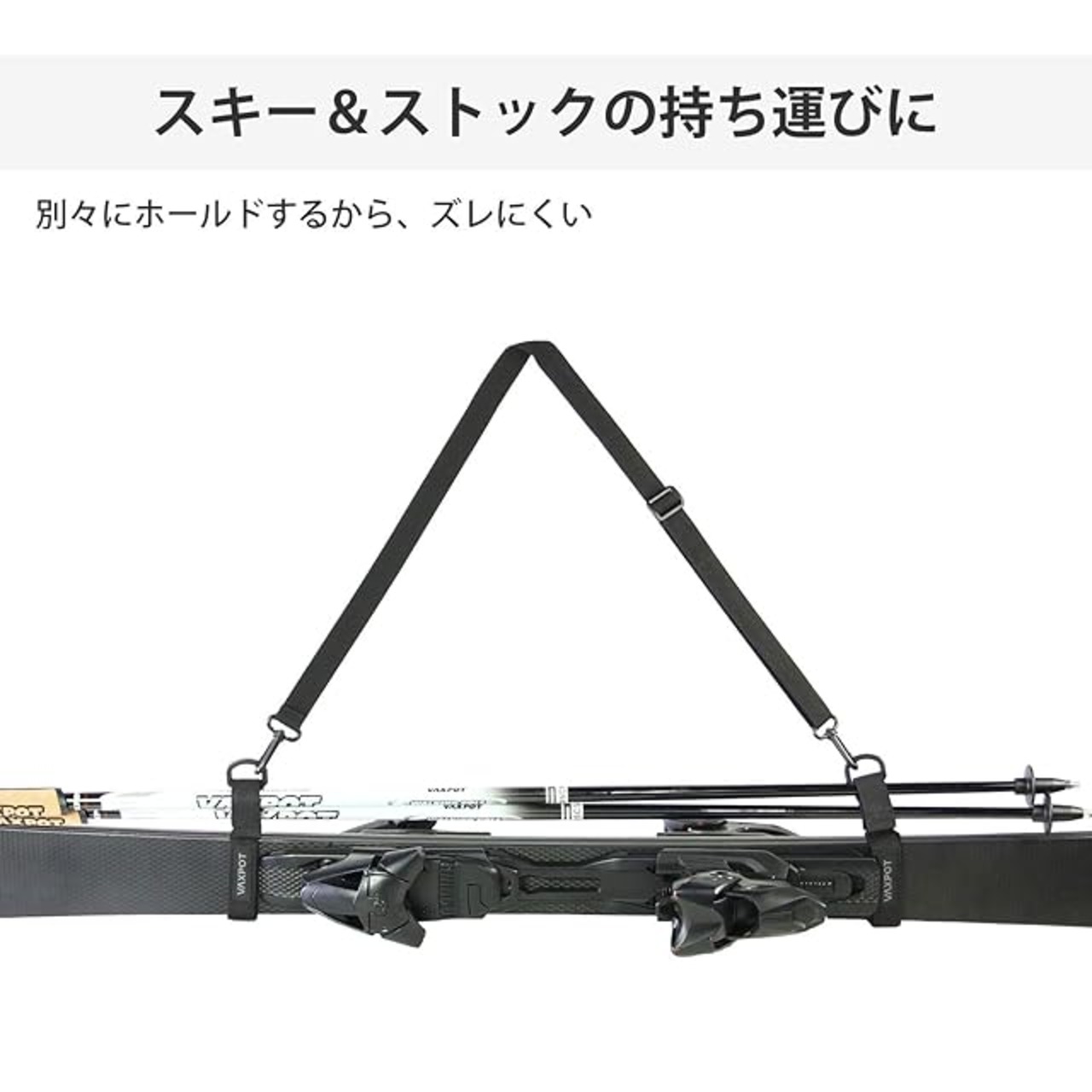 スキーとストックを別々に固定するからズレにくい