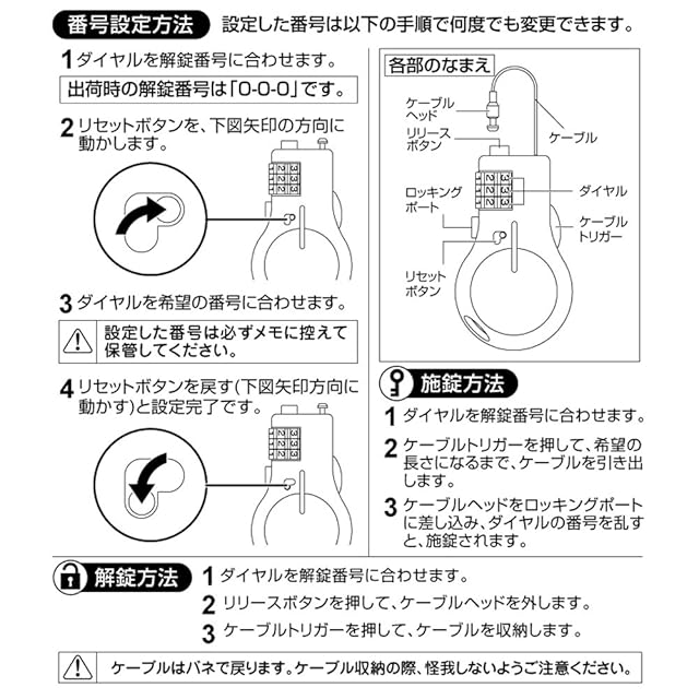 暗証番号:3桁 お好みの番号に設定できます。