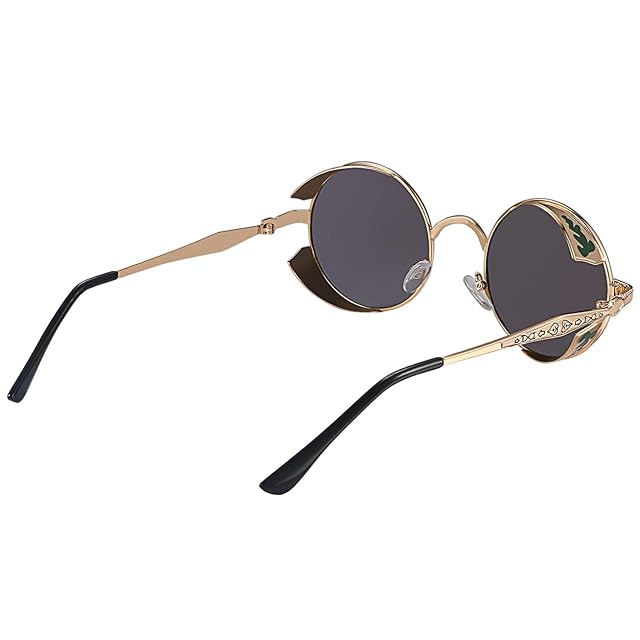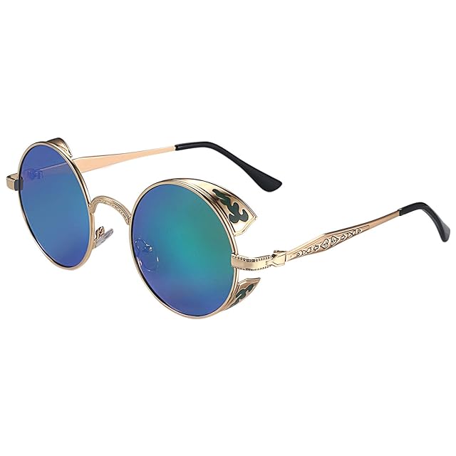 [Aroncent] 丸 サングラス 偏光 アンティーク風 メガネ サングラス レトロ おしゃれ 男女対応 ロック系 パンク系 ファッション アクセサリー