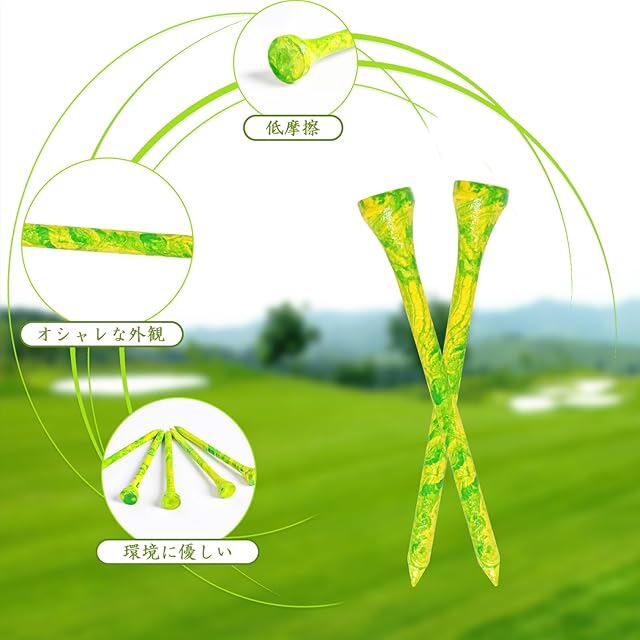 竹製で耐久性抜群:竹製ティーは、木製ティーの中でも丈夫な素材です、強度が高く、折れにくく、何度もの使用に耐えられます。練習や実際のプレーでも長期的に安定した性能を発揮します。