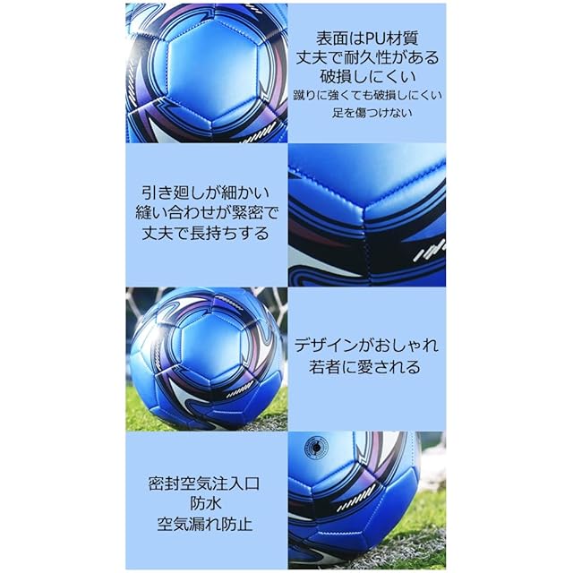 サッカーボール 5号 試合用ボール 中学 一般 大学 高校用 練習球 PU 試合用サッカーボールセット 子供用 サッカー試合球 耐摩耗 (ブルー,5号球)