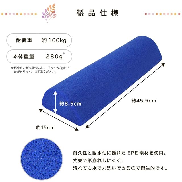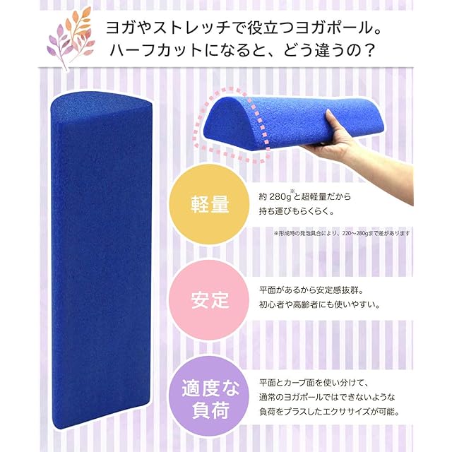 一般的なヨガポールに比べ、軽量でコンパクトなので置き場所も持ち運びも楽で、平面とカーブ面がある為、転がりにくくて初心者にも安心。