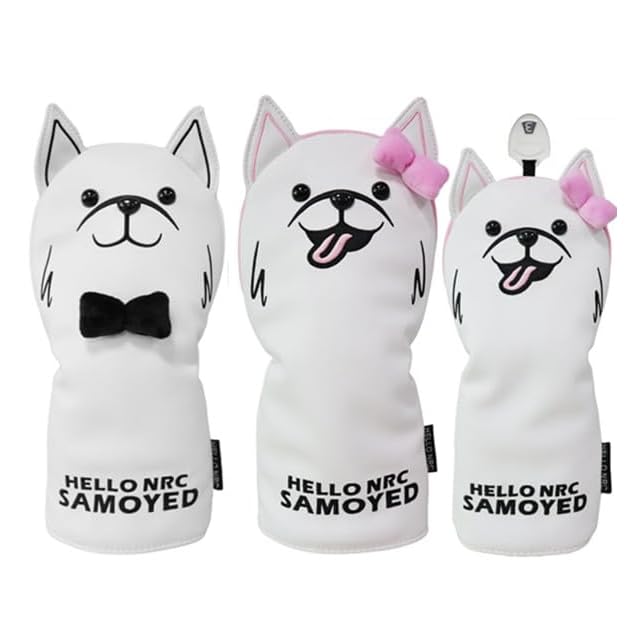 ゴルフヘッドカバー ウッド用 FW ドライバー440cc 460cc用 DR ユーティリティ UT用 防水仕様 サモエド ジェントルマン レディ 単品 セット (3点 DR FW FW, レディ)