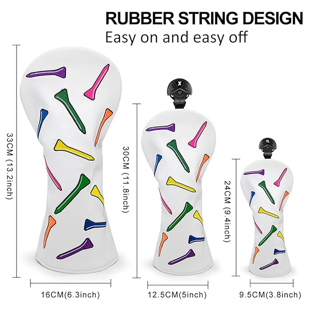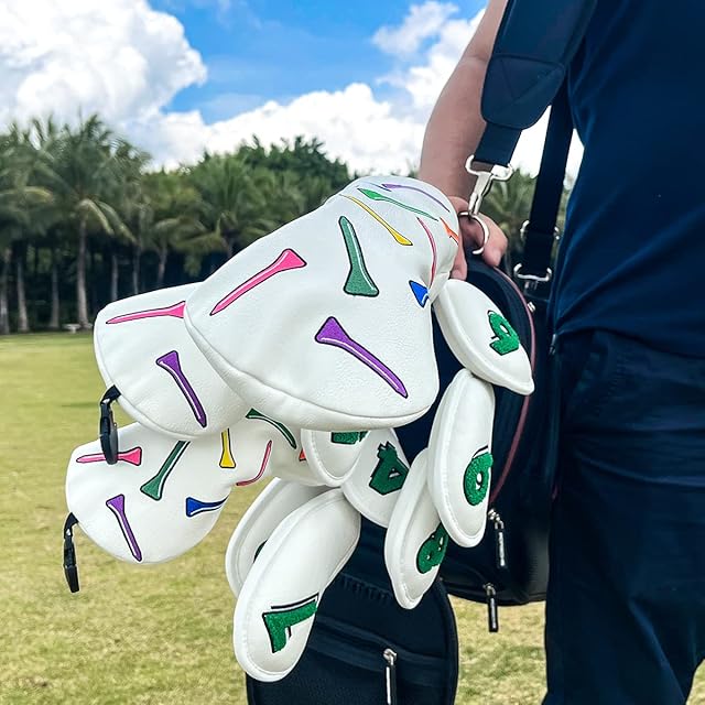 ⛳ ゴルファーのためにデザインされた、ゴルフの要素を取り入れたカラフルな刺繍のゴルフクラブヘッドカバーです。 コースであなたのゴルフバッグを際立たせます。