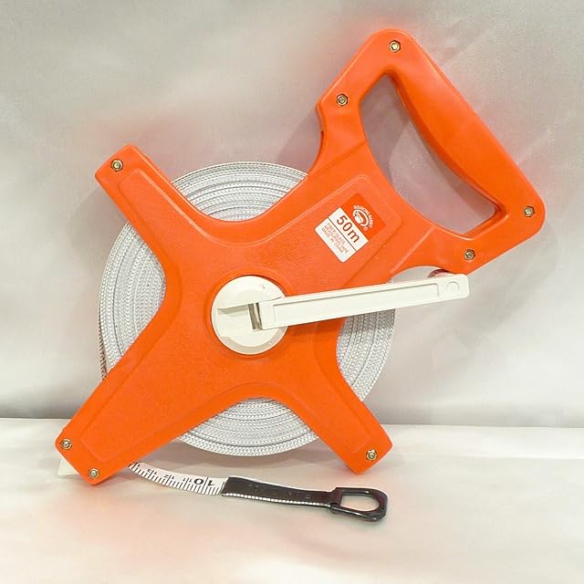 グラウンドや運動場のライン引きに! 大きなものの採寸にも便利! メートル&フィート表示 50mメジャー