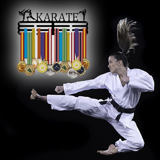 【空手テーマ】テコンドーをテーマにし、「KARATE」という言葉でデザインされたメダルハンガーです。このモチベーションを高めるメダルディスプレイラックは、スポーツが好きな方のためにクリエイティブなデザインで、成功したキャリアに変わりました。