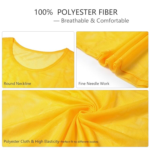 【12枚セット】ビブス 大人用 トレーニングビブス フットボールビブス ポリエステル 軽量 弾力性 吸汗速乾 サッカー イベント フットサル (イエロー)
