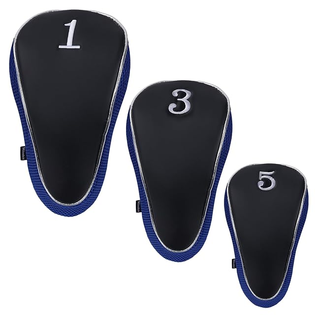 Andux ゴルフジッパークラブヘッドカバー ジッパークロージャー ゴルフ ウッドドライバー ヘッドカバー ファスナー付き 3個セット 460cc対応 MT/MG20 (ブルー)