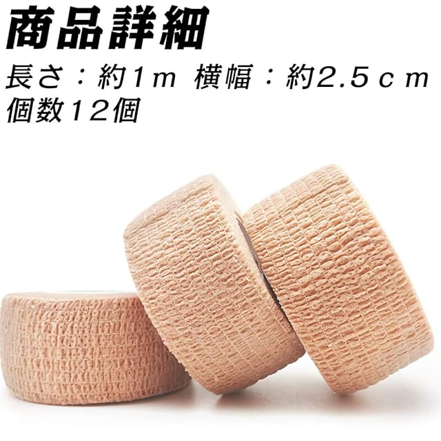 MOLCRE 自着性 テーピング 12巻 厚手タイプ バンデージ エラスチック 伸縮性 弾性包帯 (ベージュ)