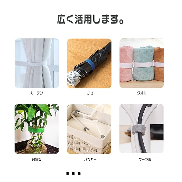 【汎用性】一時的な固定、配置、設置・分解に最適です。 持ち運びに便利なケーブル配線・玩具・家電ケーブル・ラップトップアダプターなどに使用されています。 ガーデニングにも使用できます。 植物の固定もとても便利です。