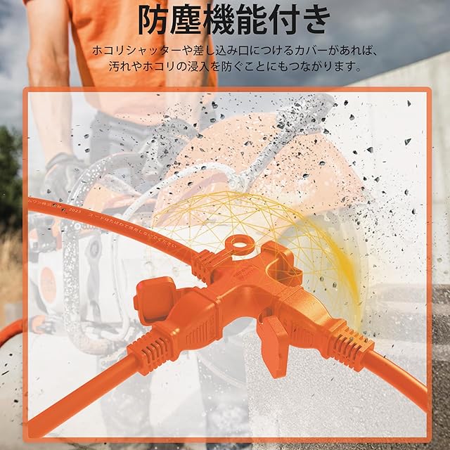 ■【安心設計】作業の電源コードに安心して使用できます。イルミネーション 屋外用 防雨型 延長コード 分配コード 電源コード コンセント フタ付 延長コード 電源増設 防雨型コンセント 複数のイルミネーションライトの配線に便利な防雨型分配コード/防雨キャップ付