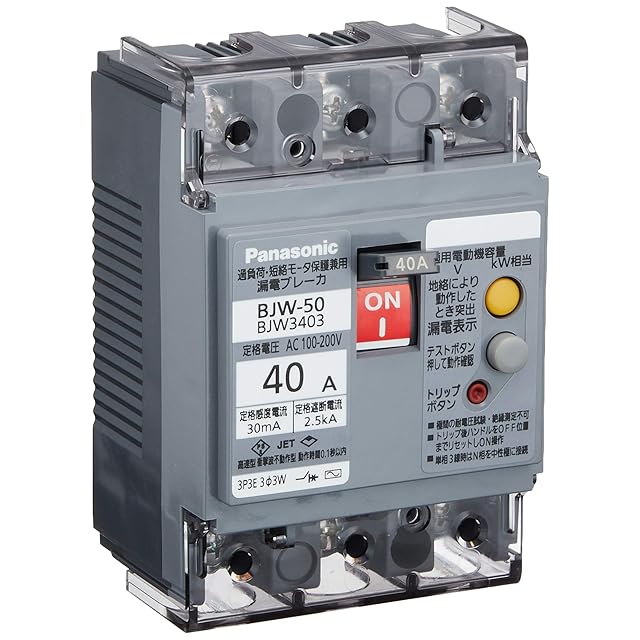 パナソニック(Panasonic) 漏電ブレーカ BJW型 OC付 モータ保護兼用 BJW3403